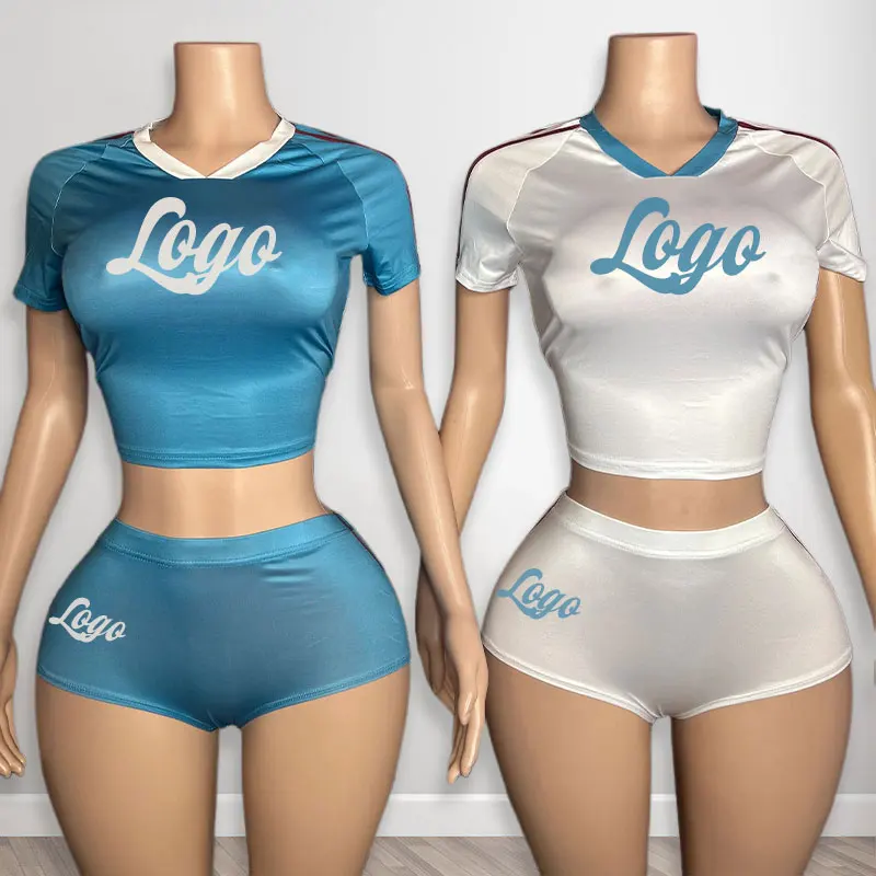 Huili Custom logo Polyester Crop t Shirt & Micro Shorts Gym Activewear Loungewear Basketball Two Piece Workout Sets for Women